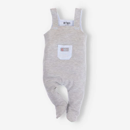 Spodnie Niemowlęce Ogrodniczki Niebieska Kieszeń Szary