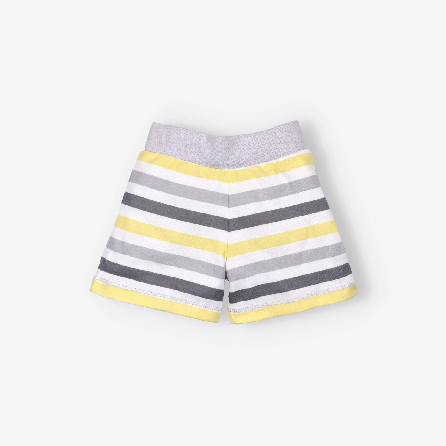 Szorty niemowlęce HELIKOPTER w delikatne paseczki dla chłopca. Wykonane z niezwykle przyjemnej w dotyku bawełny organicznej. Bawełna eko jest delikatna i nie zmienia swoich walorów nawet po wielokrotnych praniach. W pasie gruba, miękka guma dopasowująca ubranko do sylwetki dziecka. Luźna nogawka nie krępuje ruchów dziecka. Spodenki uszyte w Polsce.