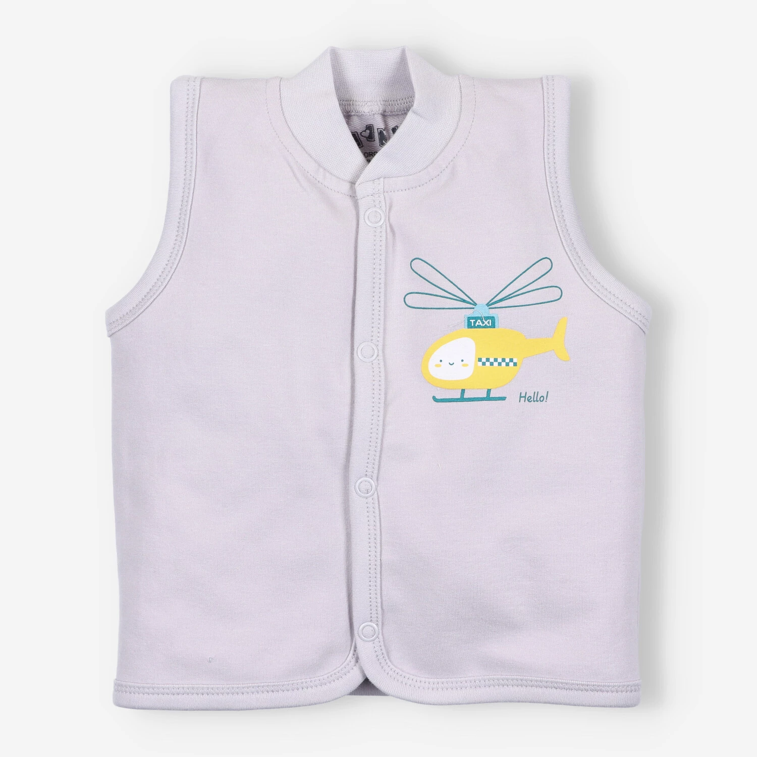 Szara kamizelka niemowlęca Helikopter z bawełny organicznej dla chłopca
