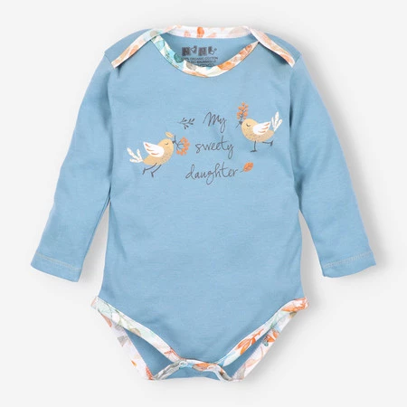 Urocze body niemowlęce w odcieniach niebiesko-zielonego z kolekcji SÓWKI to idealna propozycja dla małych dziewczynek – wygodne, delikatne i pięknie wykonane. Uszyte w Polsce z wysokiej jakości, 100% organicznej bawełny, która jest miękka, naturalna i bezpieczna dla wrażliwej skóry dziecka.