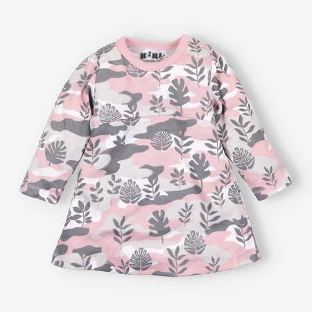 Sukienka z długim rękawem z kolekcji MORO GIRL w roślinny print. Wyprodukowana w Polsce z bardzo przyjemnej w dotyku bawełny organicznej. Włókna ekologicznej bawełny są znacznie silniejsze, nie zawierają chemikaliów i materiał lepiej oddycha, co oznacza, że ubranka z organicznej bawełny dla dzieci, świetnie służą skórce egzemalnej. Szyjka wykończona miękką lamówką. Luźny, trapezowy krój nie krępuje ruchów naszej małej księżniczki.