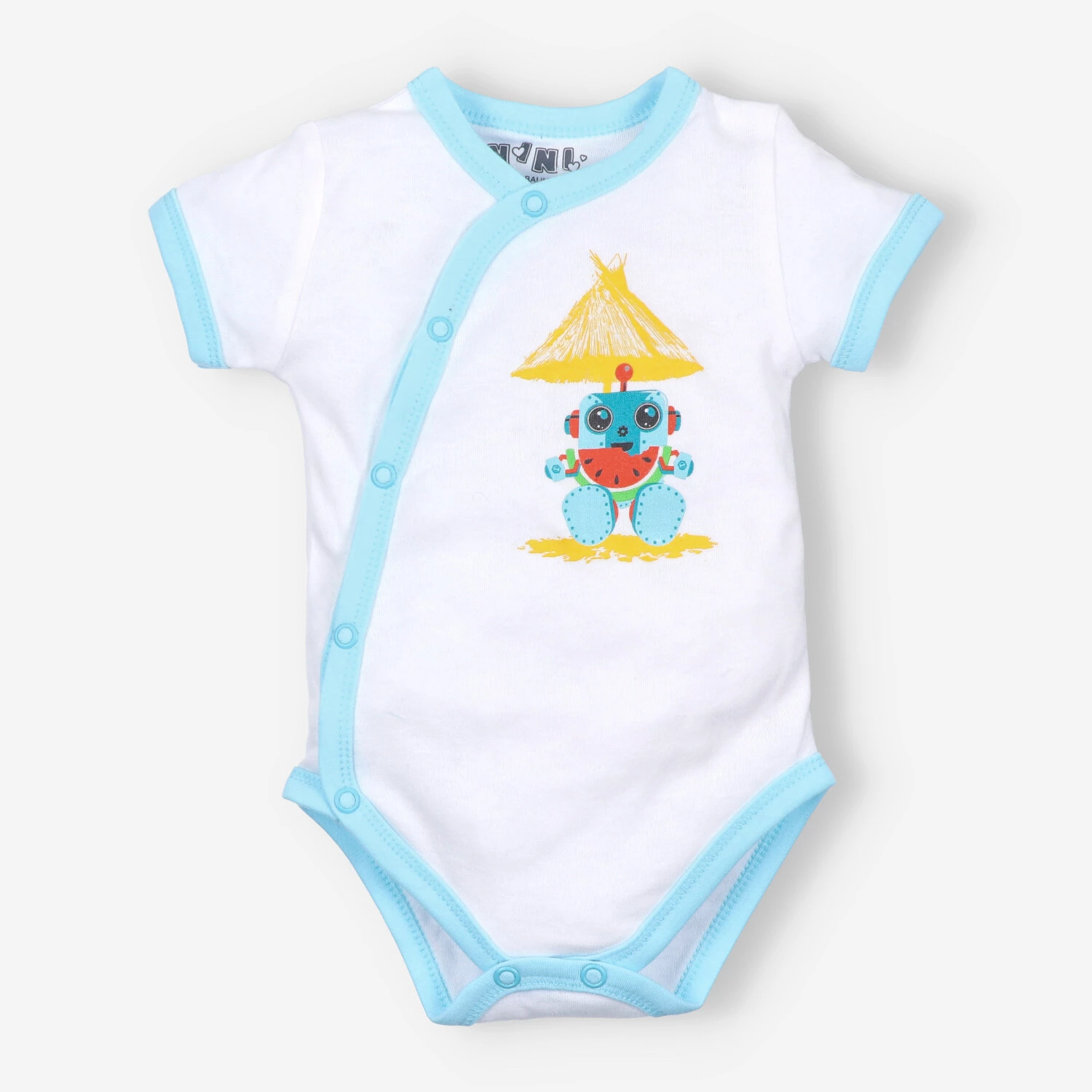 Białe body kopertowe Summer Robots z bawełny organicznej dla chłopca
