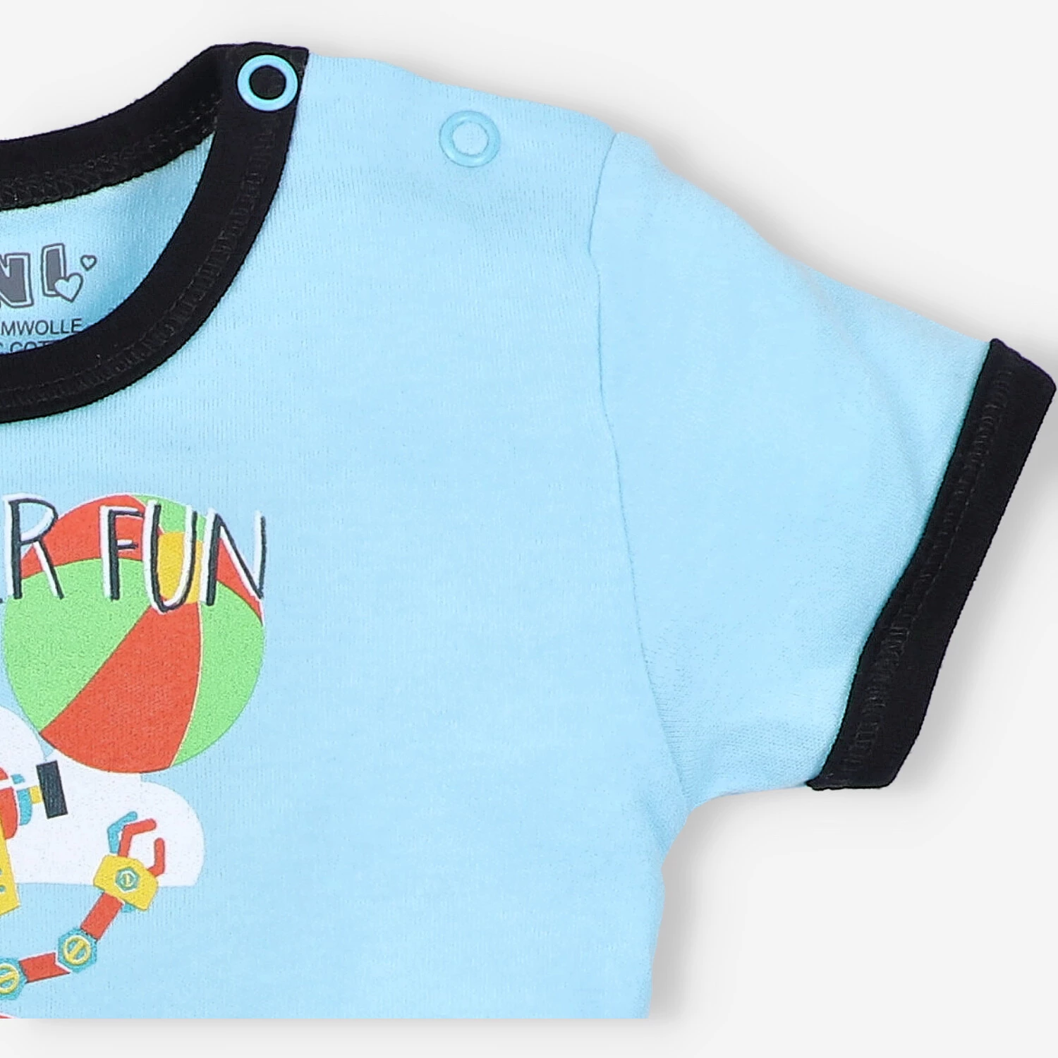 Turkusowe body niemowlęce z krótkim rękawem – SUMMER ROBOTS Ekologiczna bawełna
