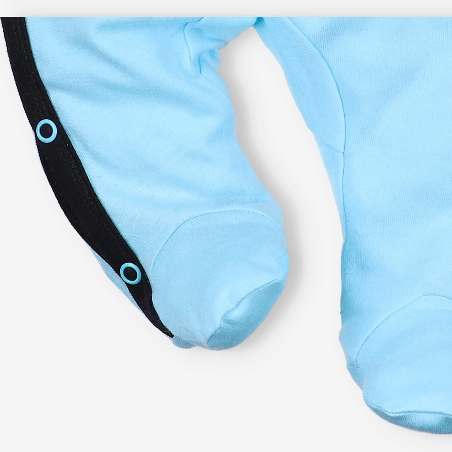 Turkusowy pajacyk niemowlęcy z kolekcji SUMMER ROBOTS – komfort i bezpieczeństwo na co dzień
