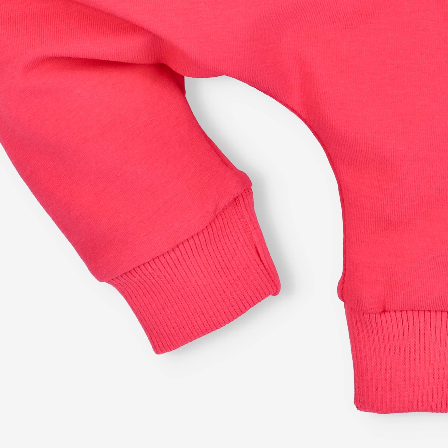 Spodnie mają elastyczną gumkę w pasie i miękkie ściągacze przy nogawkach, co zapewnia idealne dopasowanie. Dodatkową ozdobą są atrakcyjne imitacje kieszeni, które nadają ubranku modnego wyglądu. Model idealnie sprawdzi się zarówno podczas zabawy w domu, jak i na spacerze.