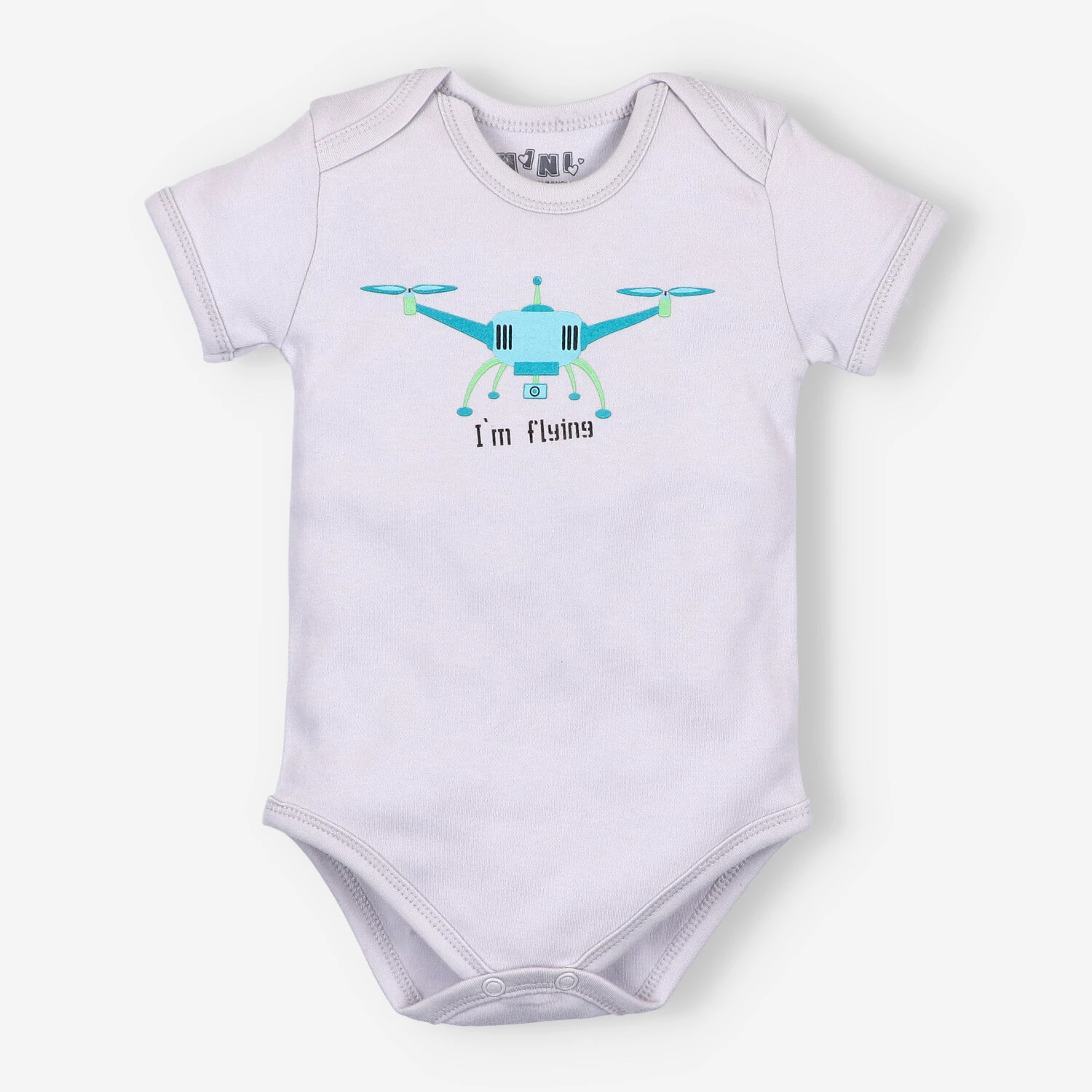 Jasno szare body DRONE z bawełny organicznej dla chłopca