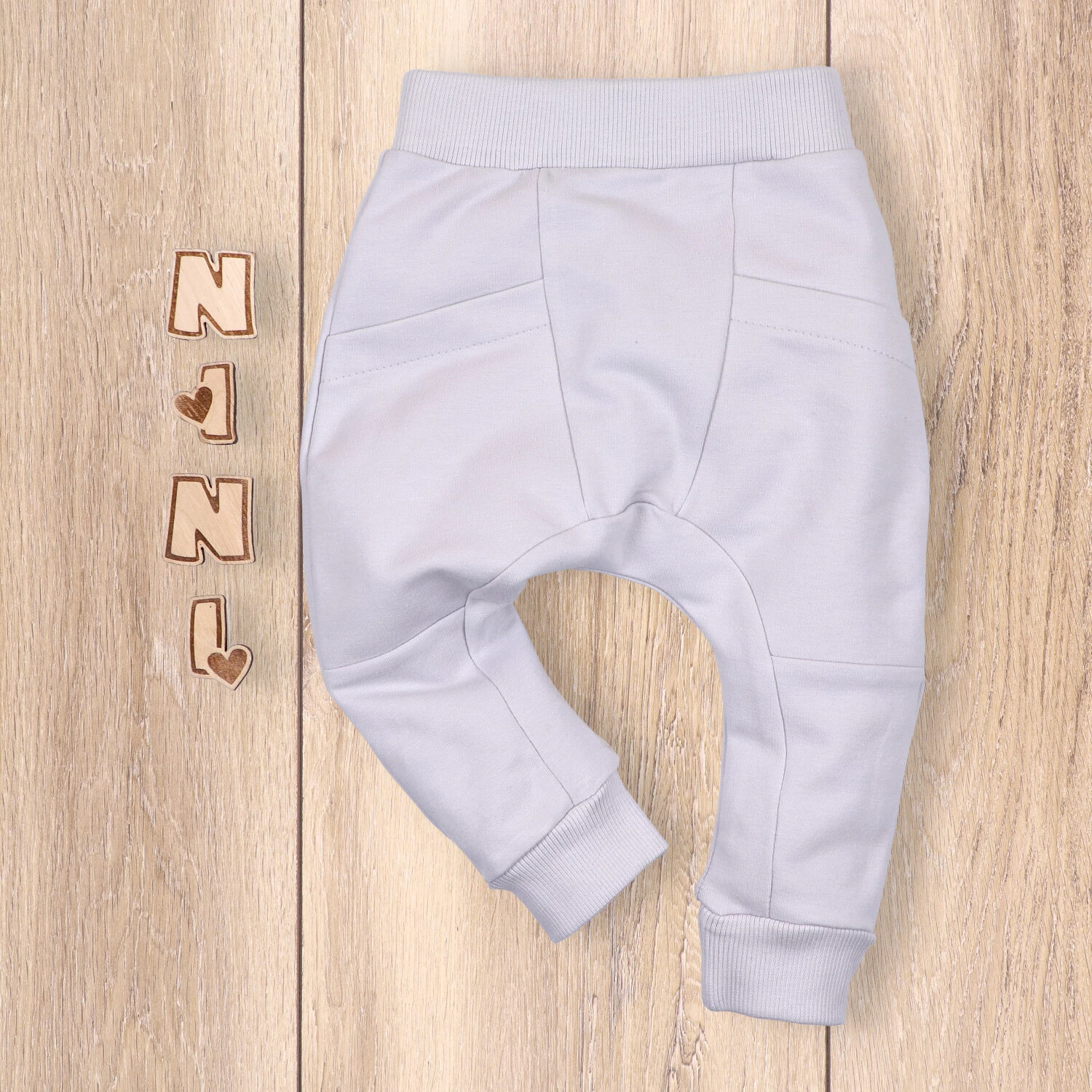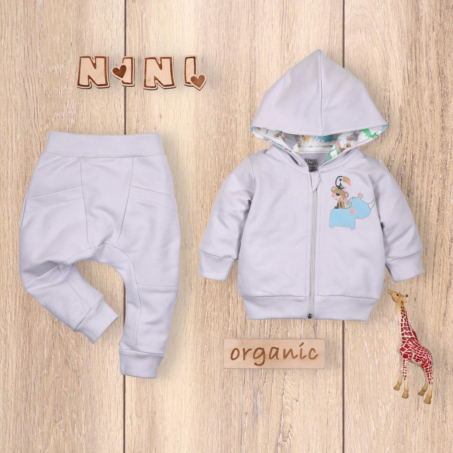 Szare spodnie niemowlęce Sawanna z bawełny organicznej dla chłopca