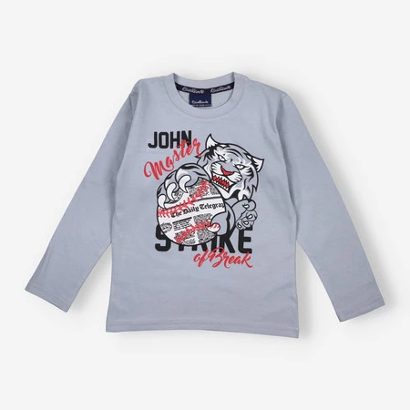 Bluzka chłopięca z długim rękawem w kolorze szarym. Wykonana z bardzo przyjemnej w dotyku, wysokogatunkowej dzianiny. Klasyczny fason dla aktywnych chłopców.