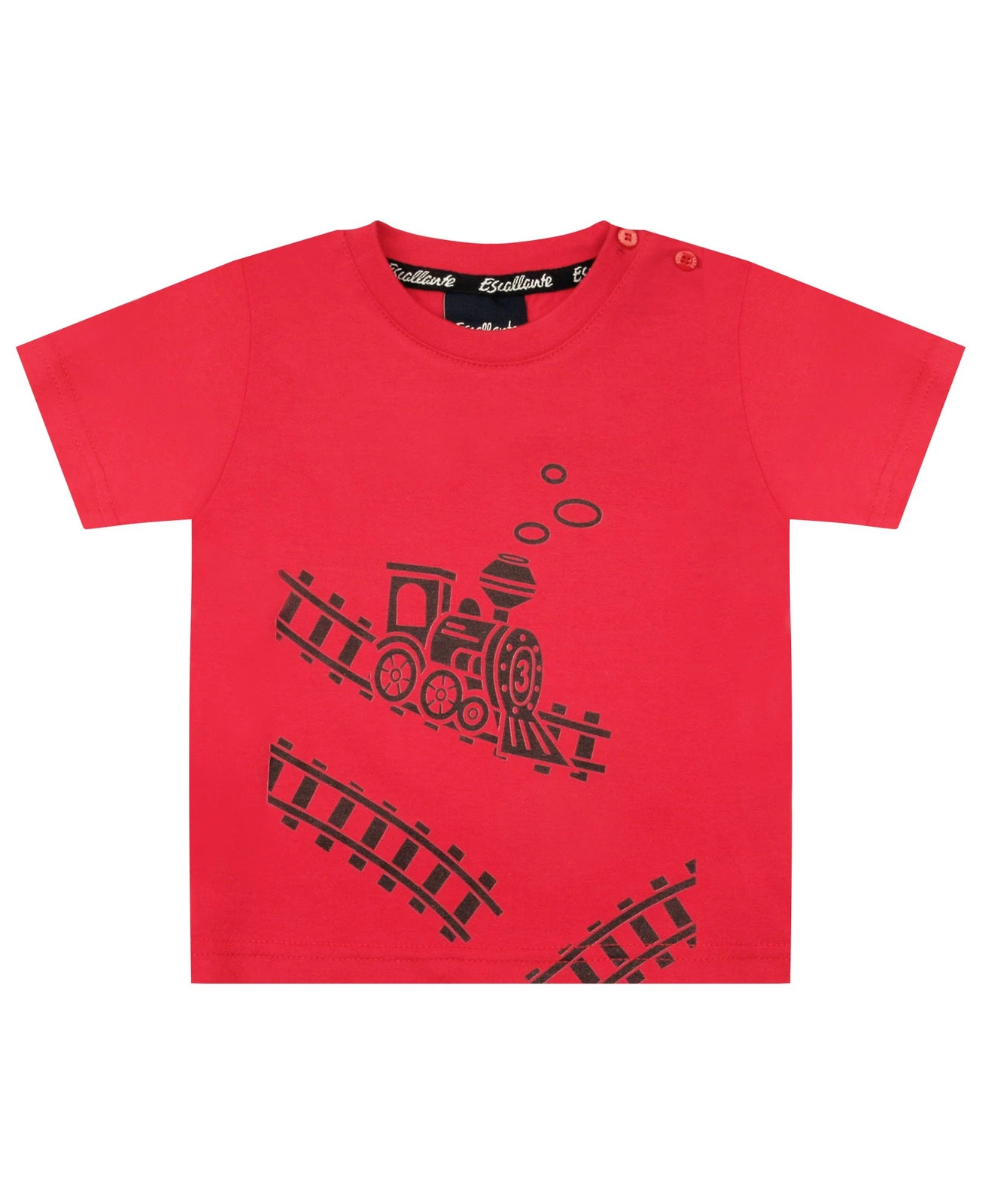 T-shirt chłopięcy z krótkim rękawem w kolorze czerwonym. Wykonany z wysokogatunkowej dzianiny, bardzo przyjemnej w dotyku. Nadruk w postaci lokomotywy spodoba się chłopcu w każdym wieku.