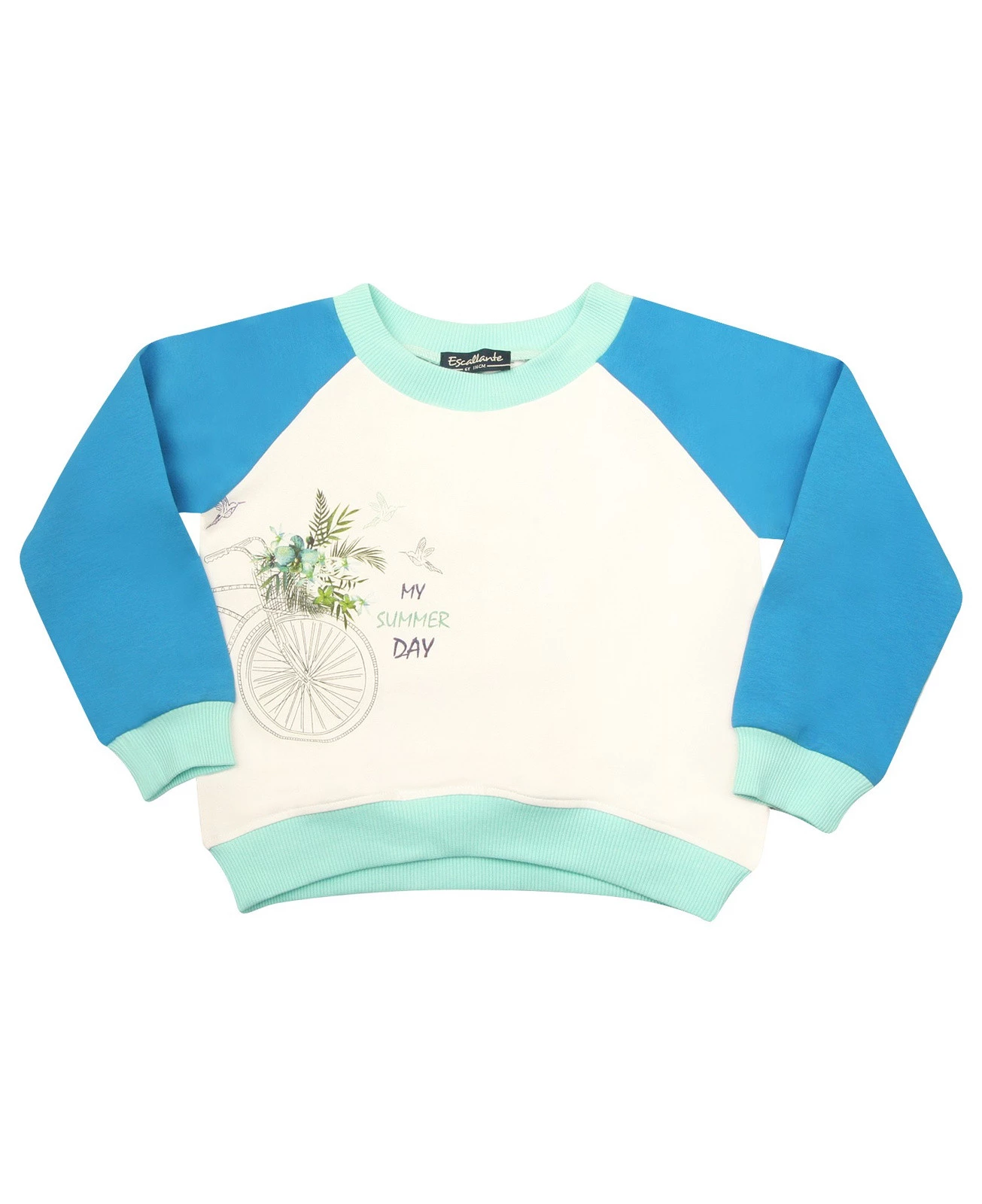 Bluza dla dziewczynki w kolorze białym. Wykonana z bardzo przyjemnej w dotyku dzianiny dresowej. Ubranko w super modnych odcieniach urzeknie dziewczynke w każdym wieku. Lekko wydłużony tył to prawdziwy hit tej wiosny.