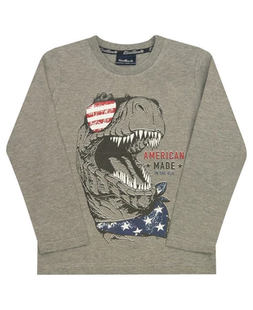 Bluzka chłopięca z długim rękawem w kolorze szarym .Wykonana z wysokiej jakości bawełny, bardzo przyjemnej w dotyku Motyw dinozaura zdobiący ubranko to zabawna propozycja dla chłopców w każdym wieku.