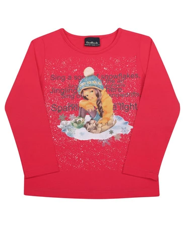 Bluzka dziewczęca z długim rękawem Nadruk Zimowy Czerwona