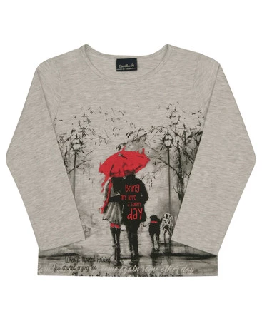 Bluzka dziewczęca z długim rękawem Romantyczny Nadruk Szara
