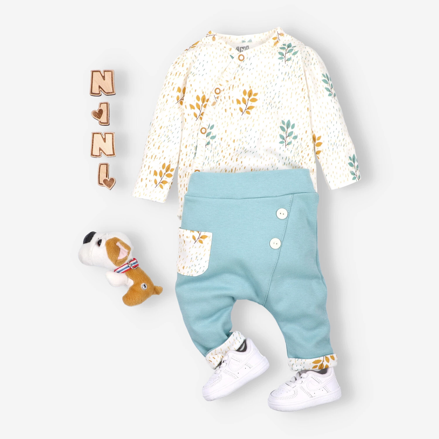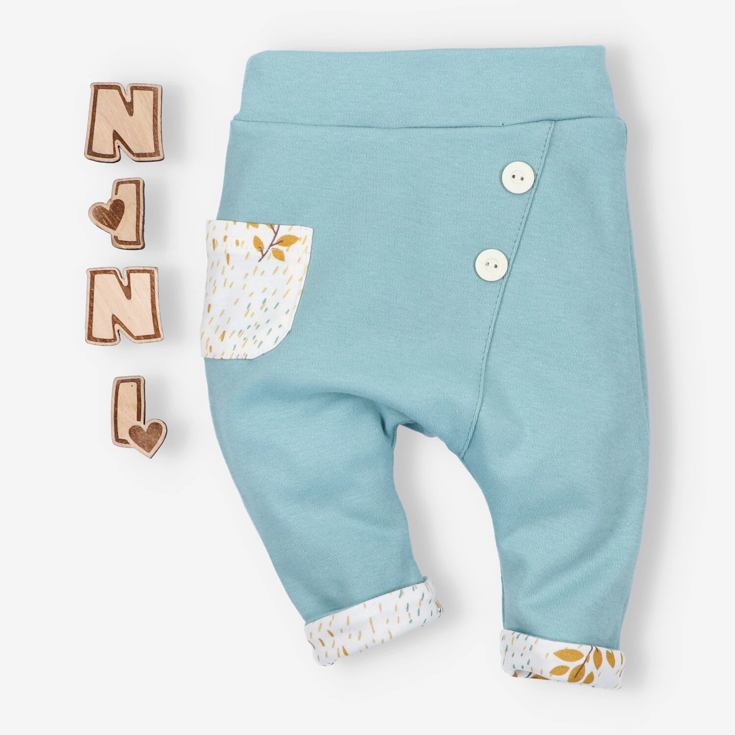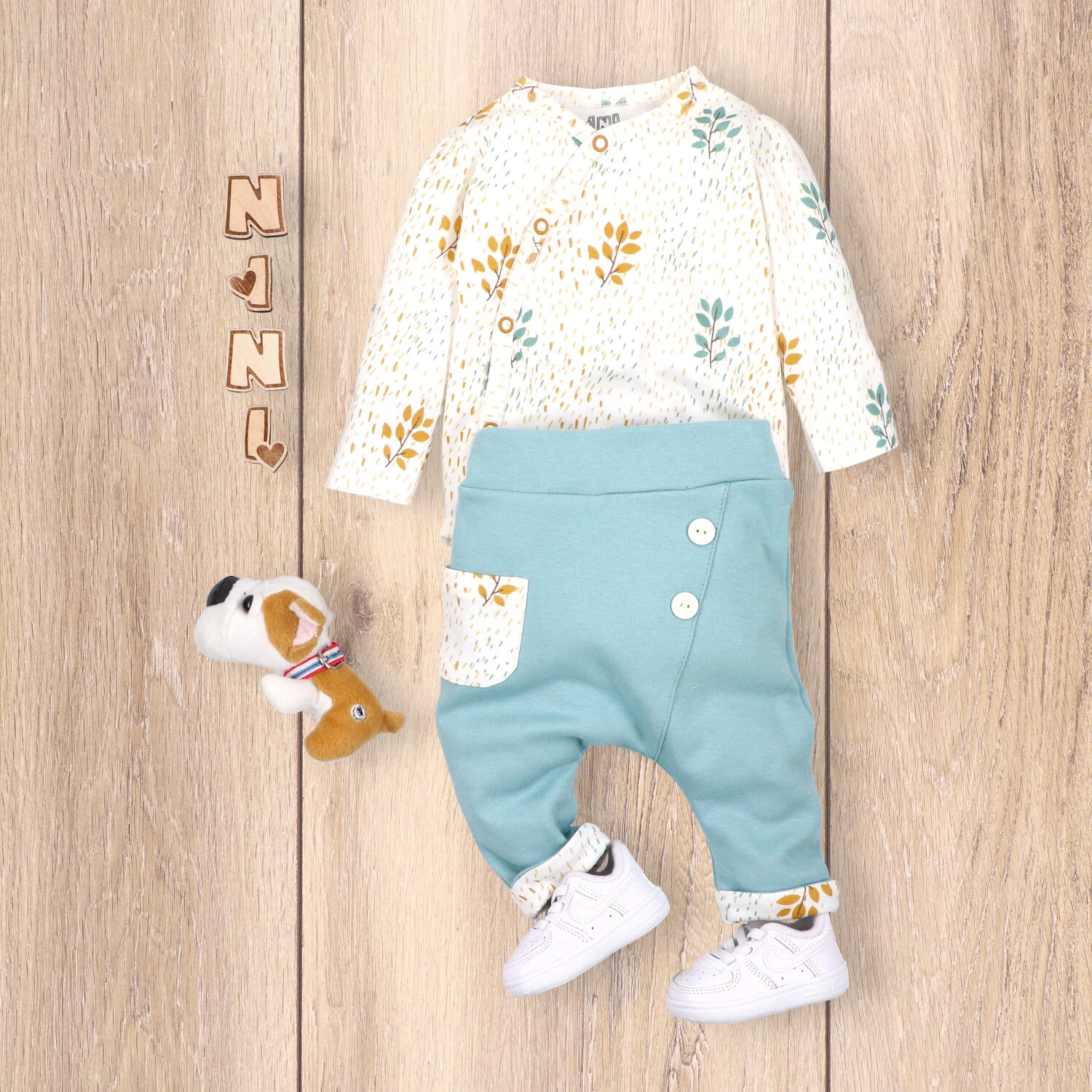 Materiał użyty do ich produkcji to tkanina w pełni naturalna – antyalergiczna, przewiewna i bezpieczna dla skóry dziecka. Dzięki swojej dwuwarstwowej budowie i sprężystym włóknom, spodnie są odporne na rozciąganie i wyjątkowo trwałe, nawet przy intensywnym użytkowaniu.