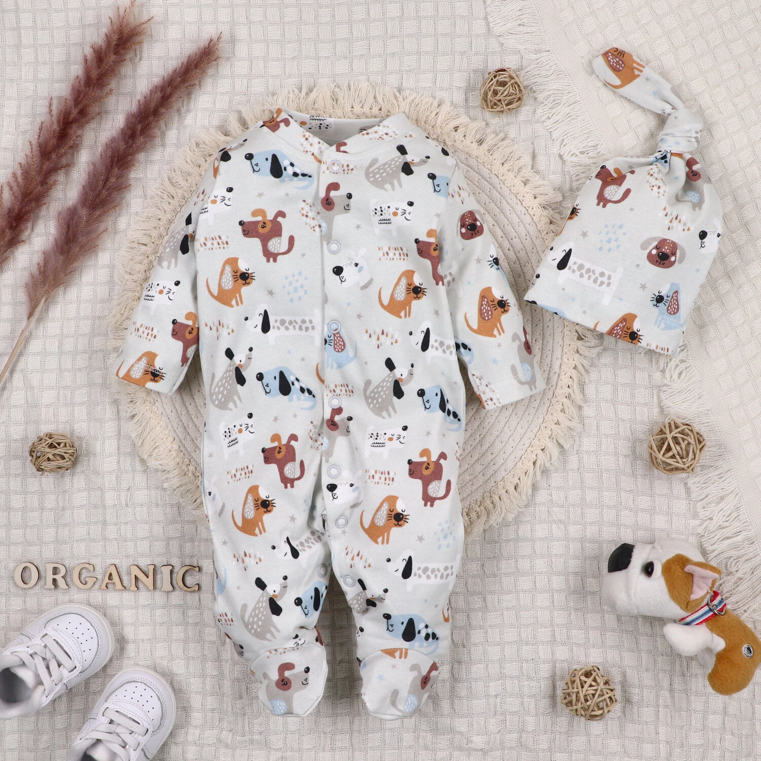 Pajac niemowlęcy dla chłopca z kolekcji PSIAKI – ekologiczna bawełna i polska jakość