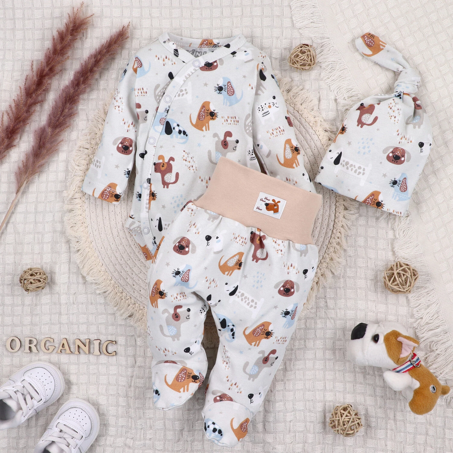 Półśpiochy niemowlęce Psiaki z bawełny organicznej dla chłopca