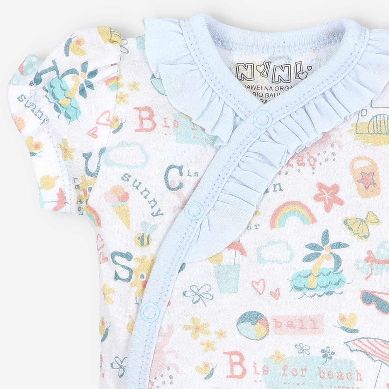 Delikatne i wygodne body kopertowe z kolekcji SUNNY zostało stworzone z myślą o najmłodszych dziewczynkach. Ubranko zostało uszyte w Polsce z przyjemnej w dotyku bawełny organicznej, która jest idealna dla wrażliwej skóry dziecka.