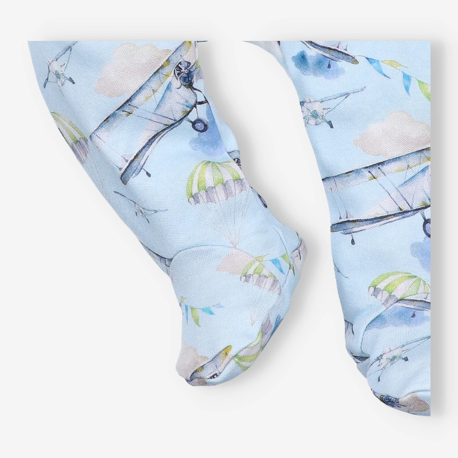Półśpiochy niemowlęce Samoloty z bawełny organicznej dla chłopca
