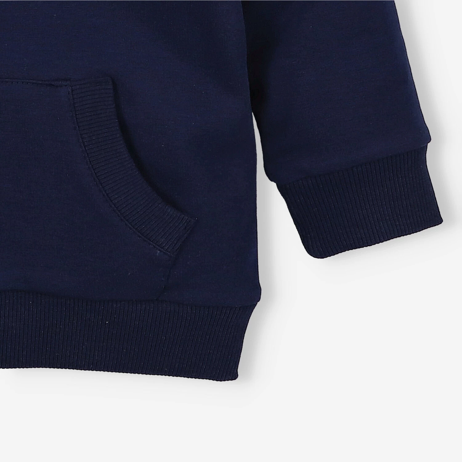 Model uszyto z dzianiny dresowej o gramaturze 250 g/m² – to połączenie 92% bawełny organicznej i 8% spandexu, które zapewnia wygodę, elastyczność i swobodę ruchów. Dla zwiększenia komfortu zastosowano miękkie lamówki, a bezniklowy zamek błyskawiczny gwarantuje bezpieczeństwo dla delikatnej skóry dziecka.