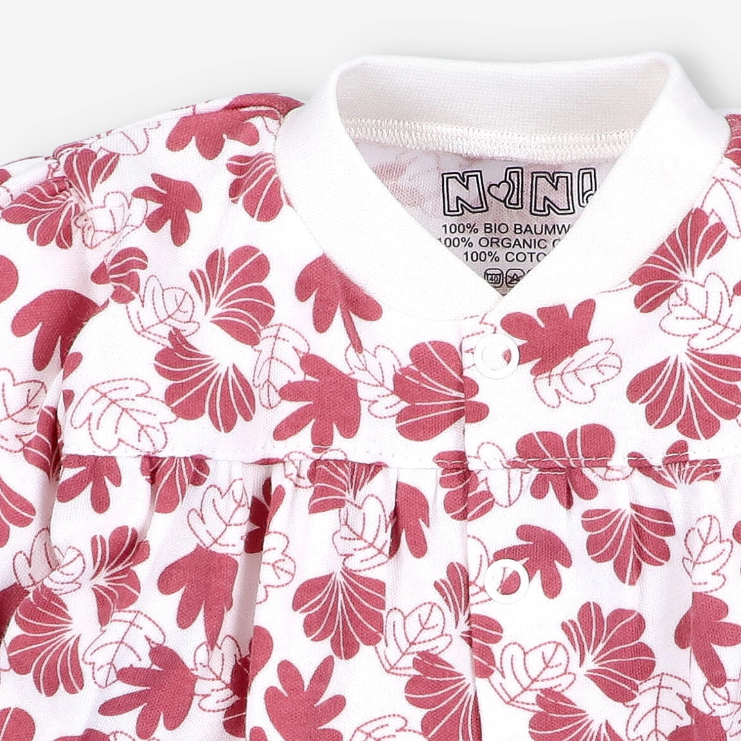Kaftanik wyposażony jest w bezniklowe napy, które nie uczulają i są w pełni bezpieczne dla skóry maluszka. Dodatkowym atutem są miękkie lamówki, które zapewniają dziecku pełen komfort noszenia oraz wklejana metka, eliminująca ryzyko podrażnień.