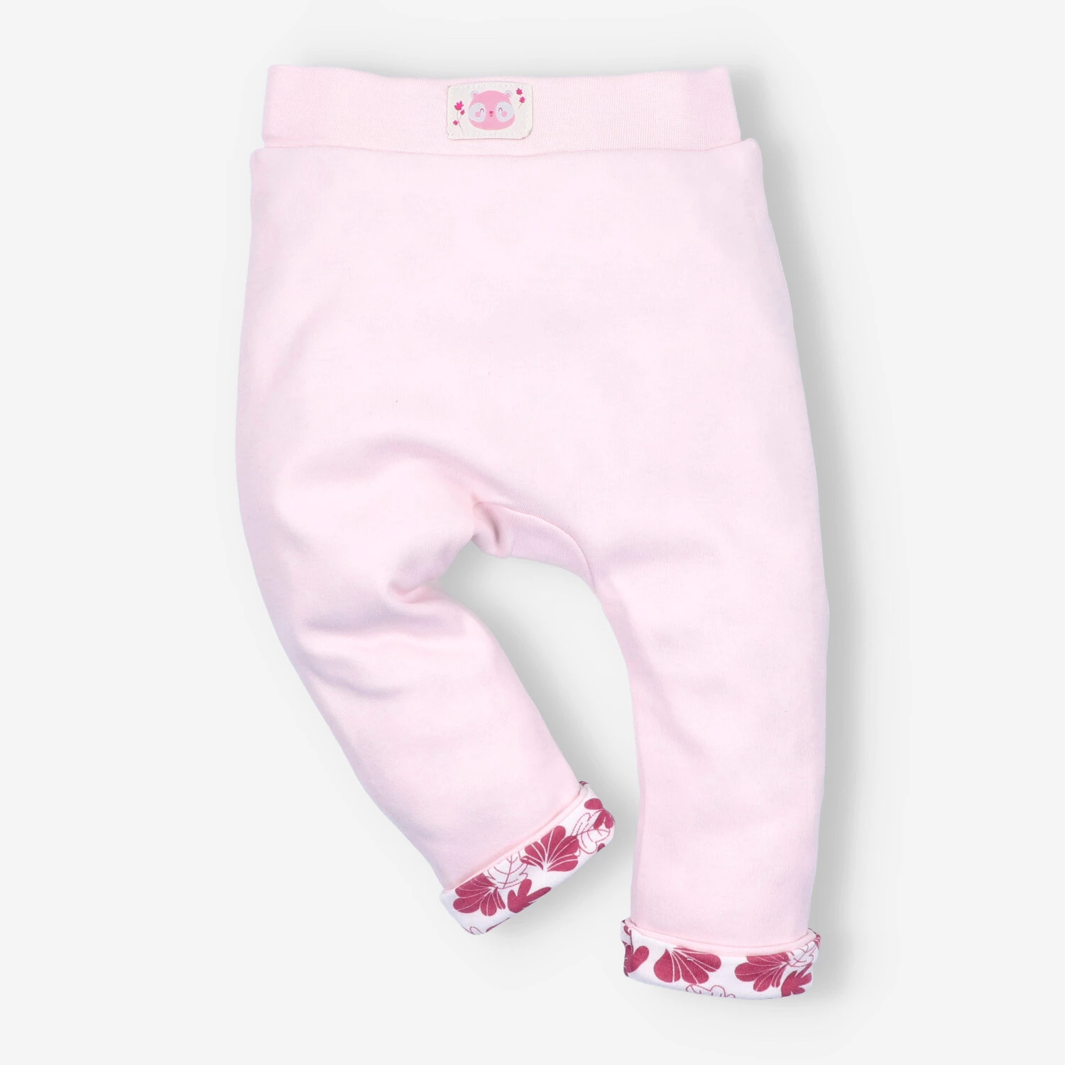 Różowe niemowlęce spodnie z bawełny organicznej – kolekcja WESOŁA PANDA