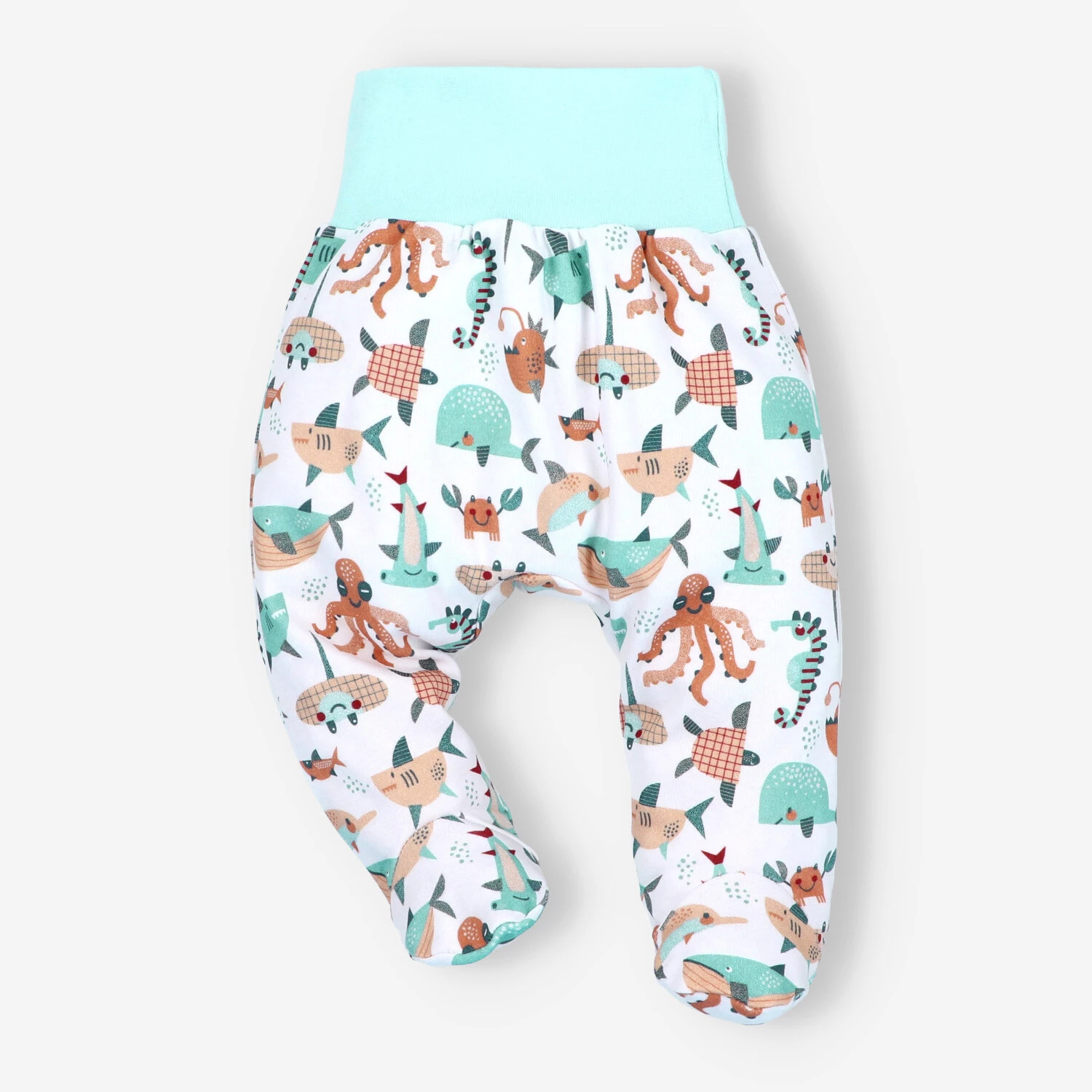 Półśpiochy Niemowlęce Morskie Zwierzątka Z Bawełny Organicznej Nadruk Miętowy