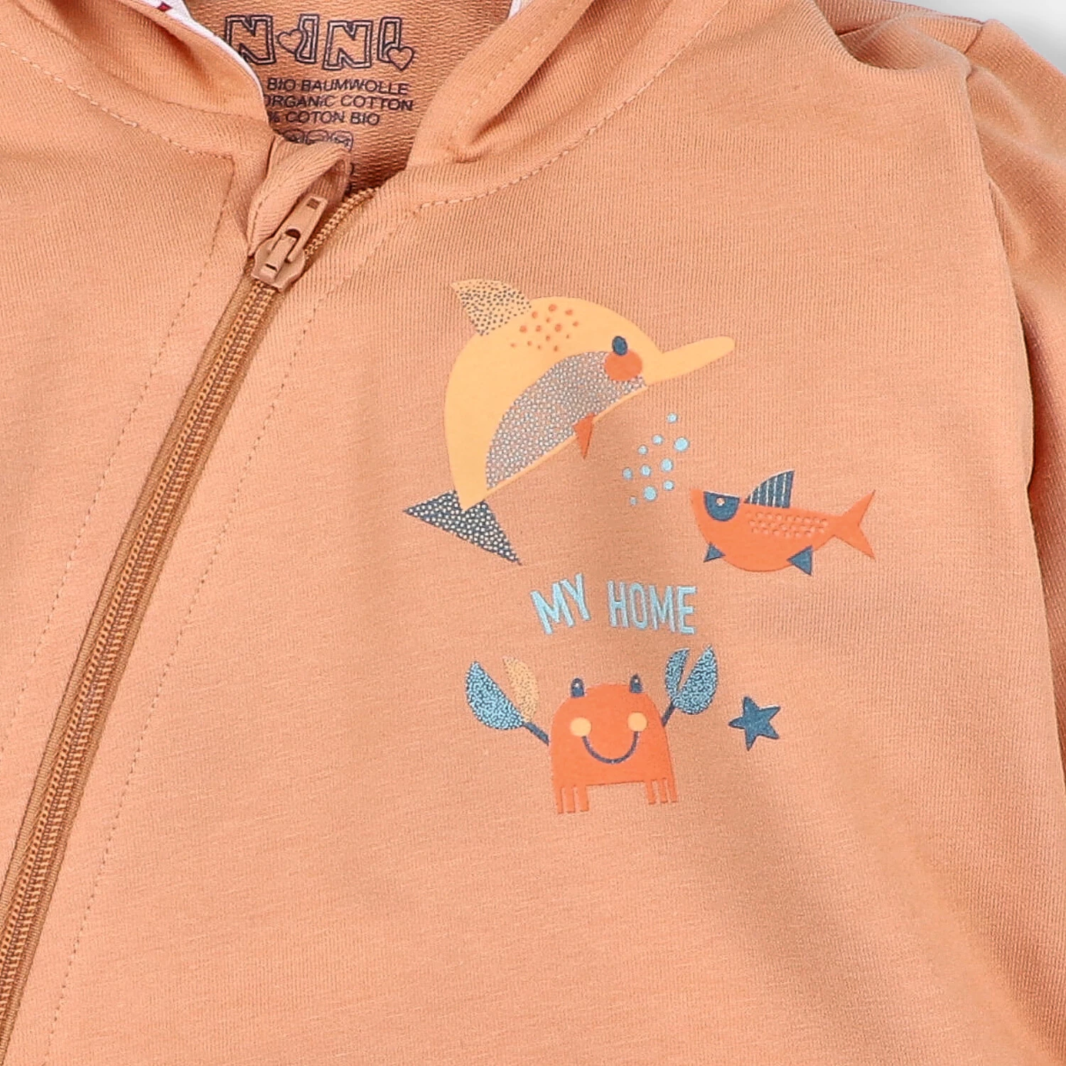 Model wykonany jest z dzianiny dresowej o gramaturze 250 g/m², zawierającej 92% bawełny organicznej oraz 8% spandexu, co zapewnia elastyczność i wygodne dopasowanie. Bezniklowy zamek błyskawiczny oraz miękkie lamówki dbają o bezpieczeństwo i komfort noszenia. Zastosowano także drukowaną metkę, dzięki której nie ma ryzyka otarć ani podrażnień.