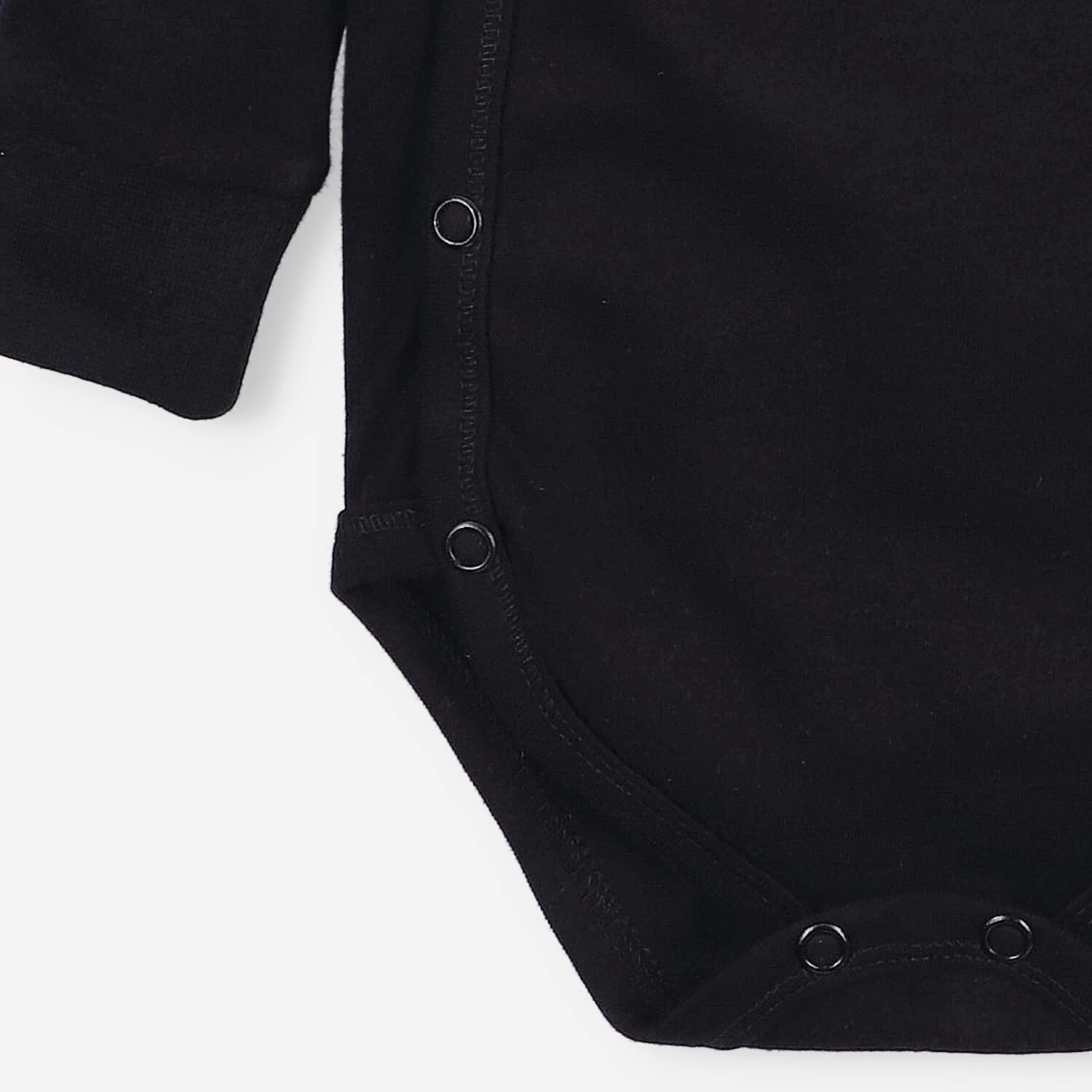 Stylowe czarne body kopertowe z kolekcji ALFABET to funkcjonalne i wygodne ubranko stworzone specjalnie z myślą o chłopcach. Zostało uszyte w Polsce z miękkiej, organicznej bawełny, która doskonale sprawdzi się w kontakcie z wrażliwą skórą dziecka.