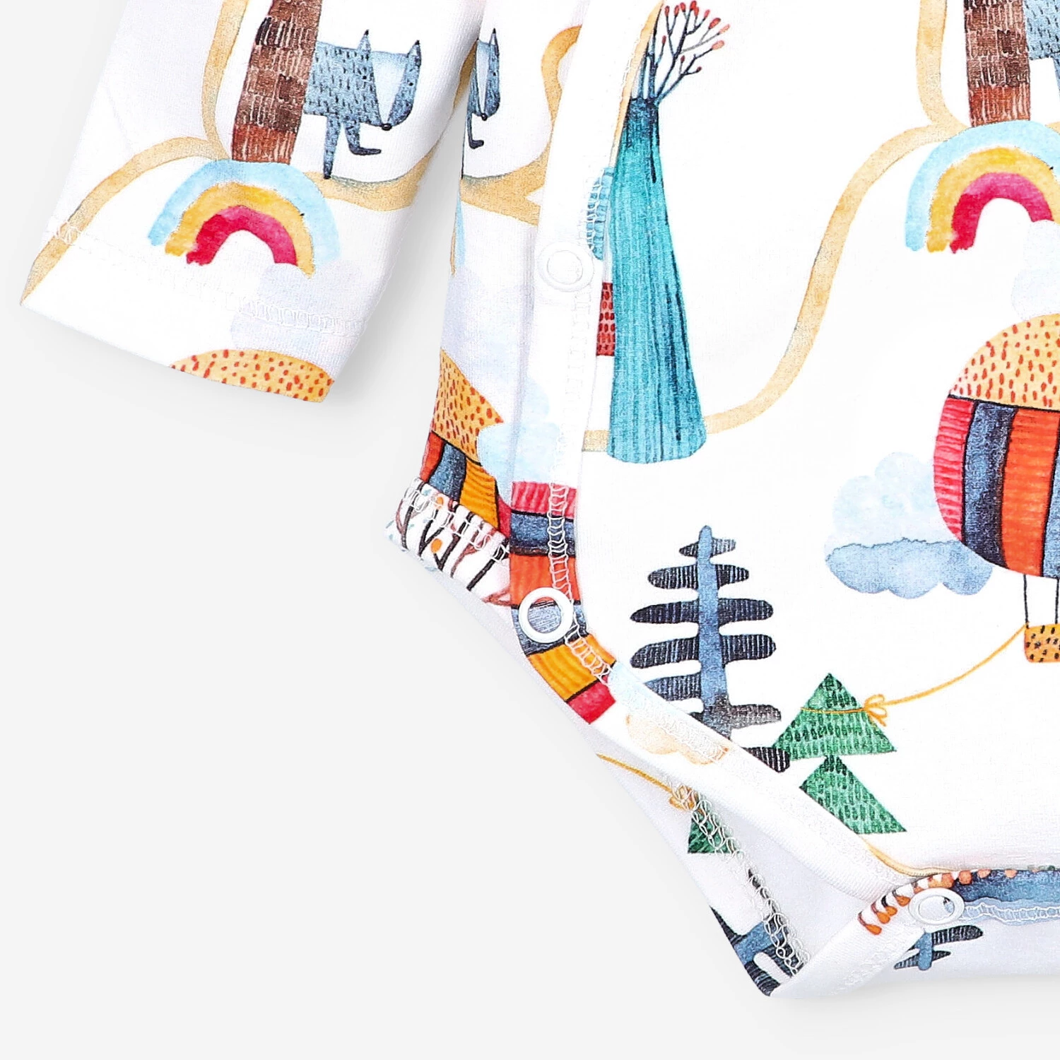 Dziewczęce body kopertowe z kolekcji KOLOROWY LAS – naturalna wygoda