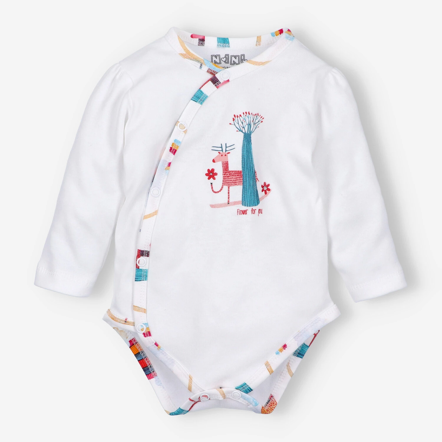 Urocze body kopertowe dla dziewczynki z kolekcji KOLOROWY LAS to doskonałe połączenie wygody, naturalnych materiałów i troski o zdrowie dziecka. Ubranko zostało uszyte w Polsce z wyjątkowo miękkiej i ekologicznej bawełny organicznej, przyjaznej nawet dla najbardziej wrażliwej skóry niemowlęcia.