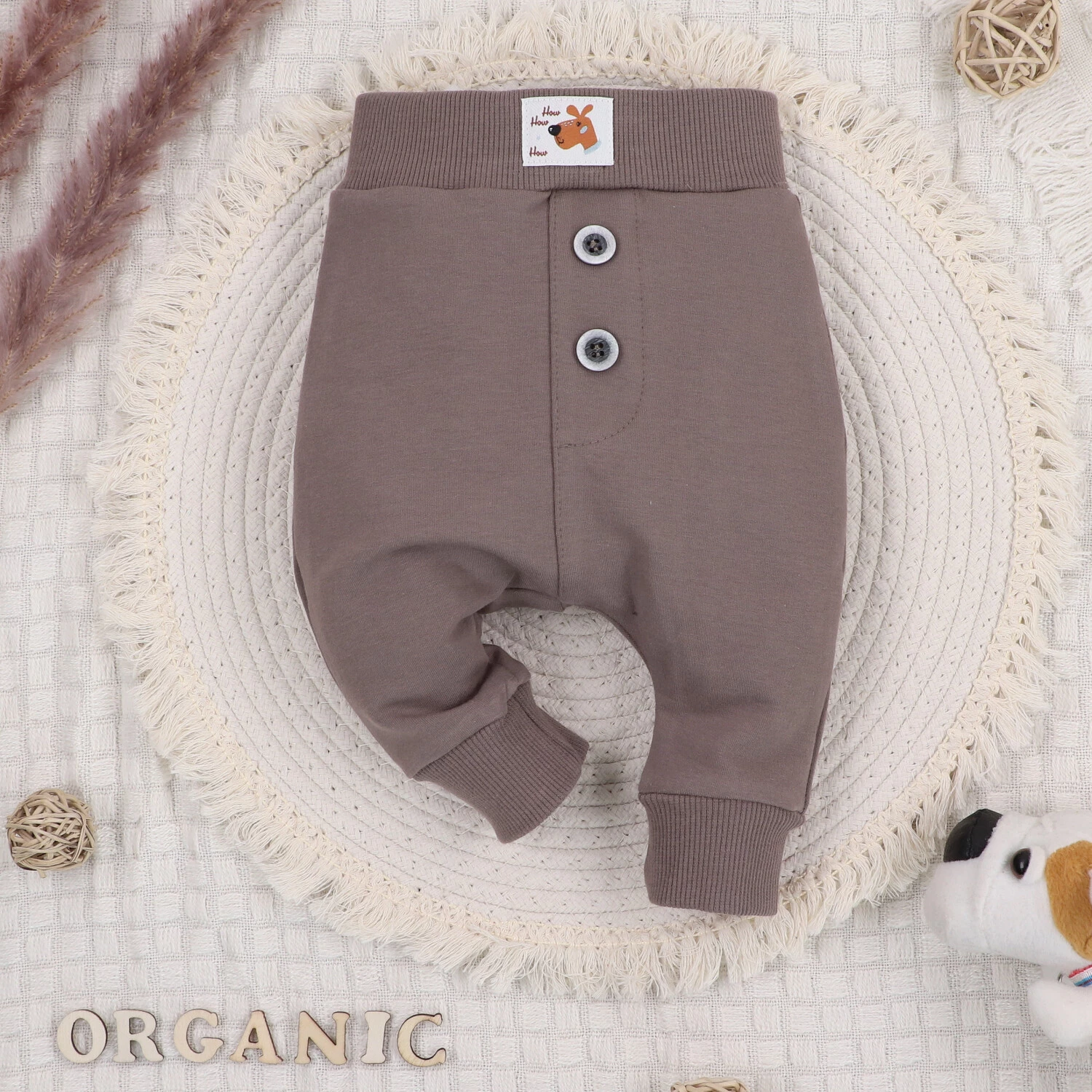Spodnie Dresowe Niemowlęce Z Bawełny Organicznej Z Guziczkami - Brązowe