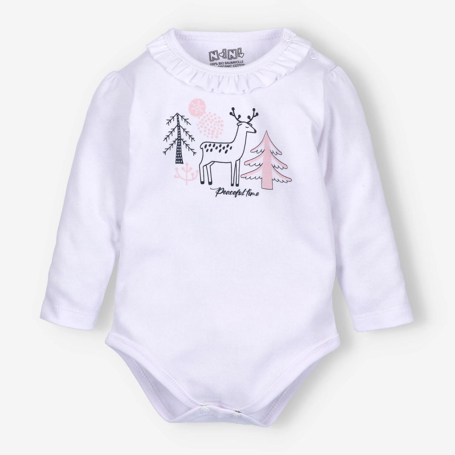 Body niemowlęce Jelonki z bawełny organicznej dla dziewczynki - białe