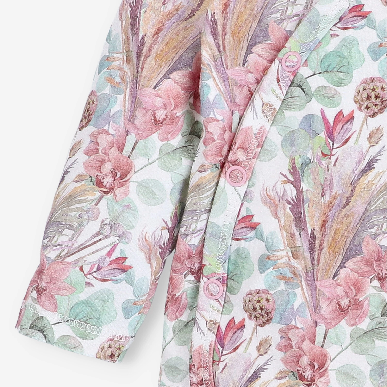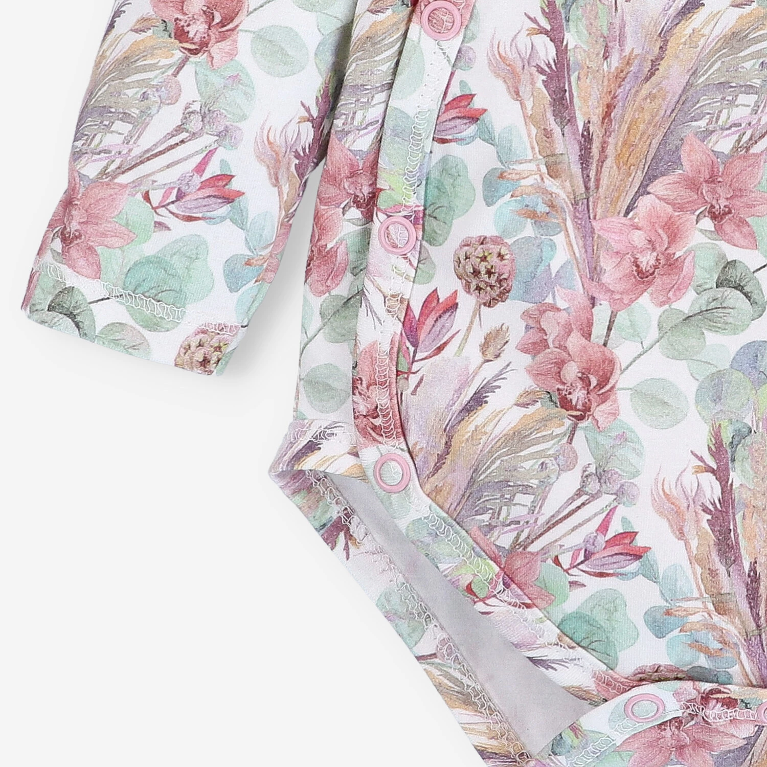 Urocze body kopertowe z kolekcji MAGIC FLOWERS to doskonała propozycja dla małych dziewczynek. Uszyte w Polsce z wyjątkowo miękkiej i ekologicznej bawełny organicznej, która jest delikatna dla skóry dziecka i w pełni bezpieczna już od pierwszych dni życia.