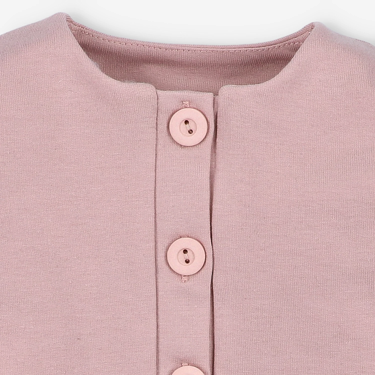 Włókna bawełny organicznej są wyjątkowo trwałe, odporne na rozciąganie i zachowują sprężystość, co sprawia, że bluza długo wygląda jak nowa. Subtelne lamówki, ozdobne guziczki i drukowana metka zwiększają komfort noszenia i dodają ubranku uroku.