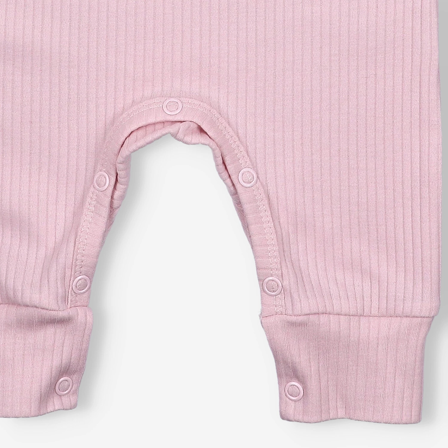 Rampers niemowlęcy z dzianiny prążkowej. Uszyty w Polsce z delikatnej bawełny premium. Bezniklowe napy i delikatne, miękkie lamówki to dodatkowe atuty ubranka. Ubranko idealnie sprawdzi się również w nocy jako piżamka. Bawełna jest elastyczna i niezwykle miła w dotyku.