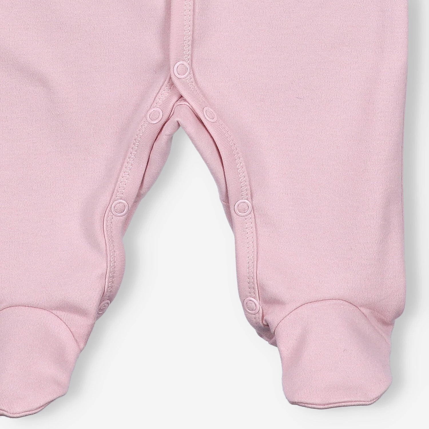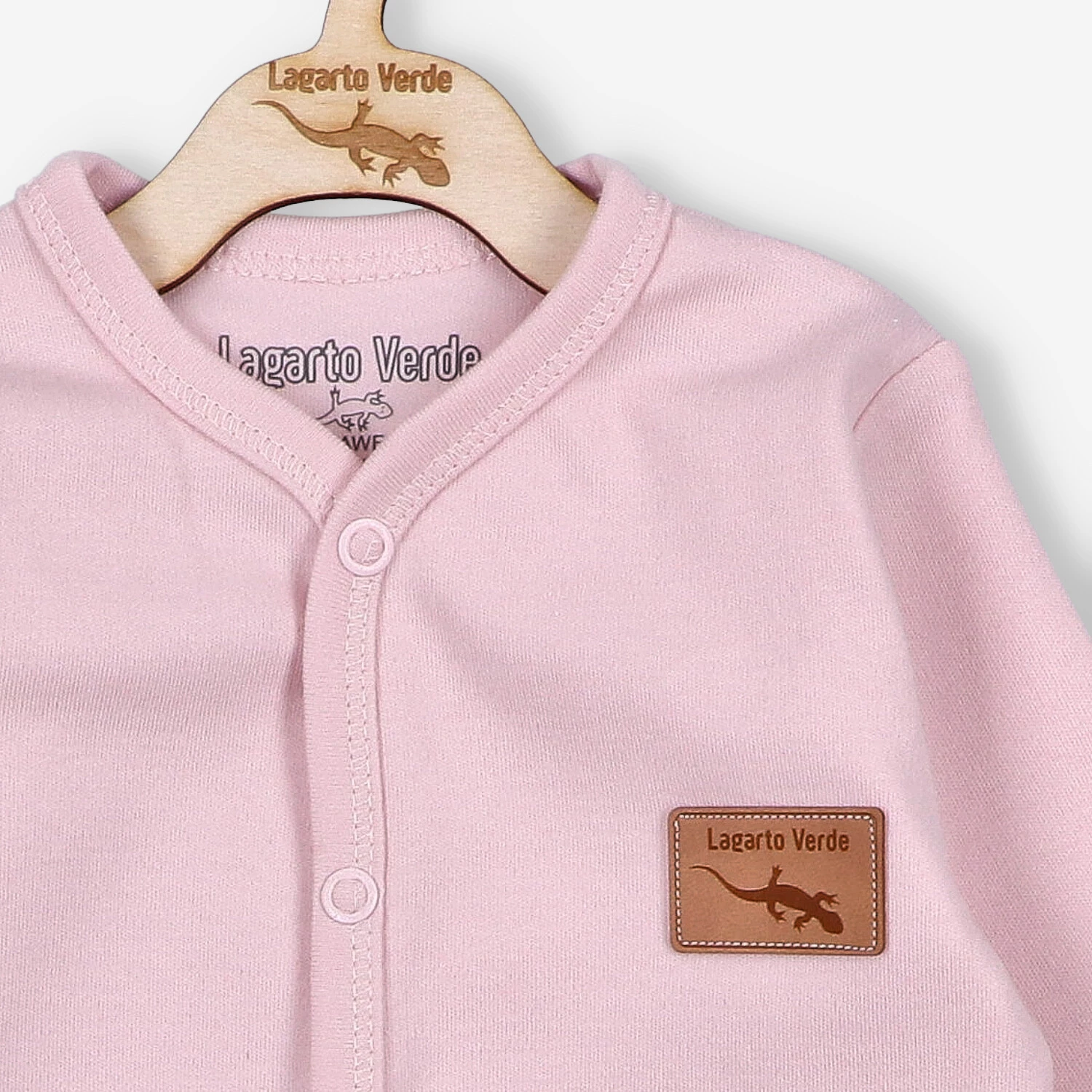 Pajac niemowlęcy uszyty w Polsce z delikatnej bawełny premium. Bezniklowe napy i delikatne, miękkie lamówki to dodatkowe atuty ubranka.