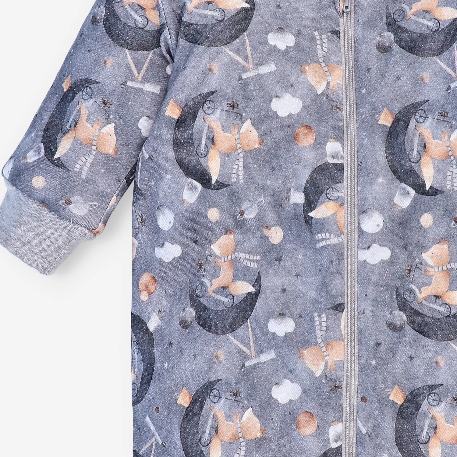 Praktyczny i komfortowy kombinezon dla chłopca z kolekcji SPACE TOUR to świetny wybór na chłodniejsze dni. Ubranko zostało zaprojektowane i uszyte w Polsce z wyjątkowo miękkiej bawełny organicznej, która jest łagodna dla wrażliwej skóry dziecka.