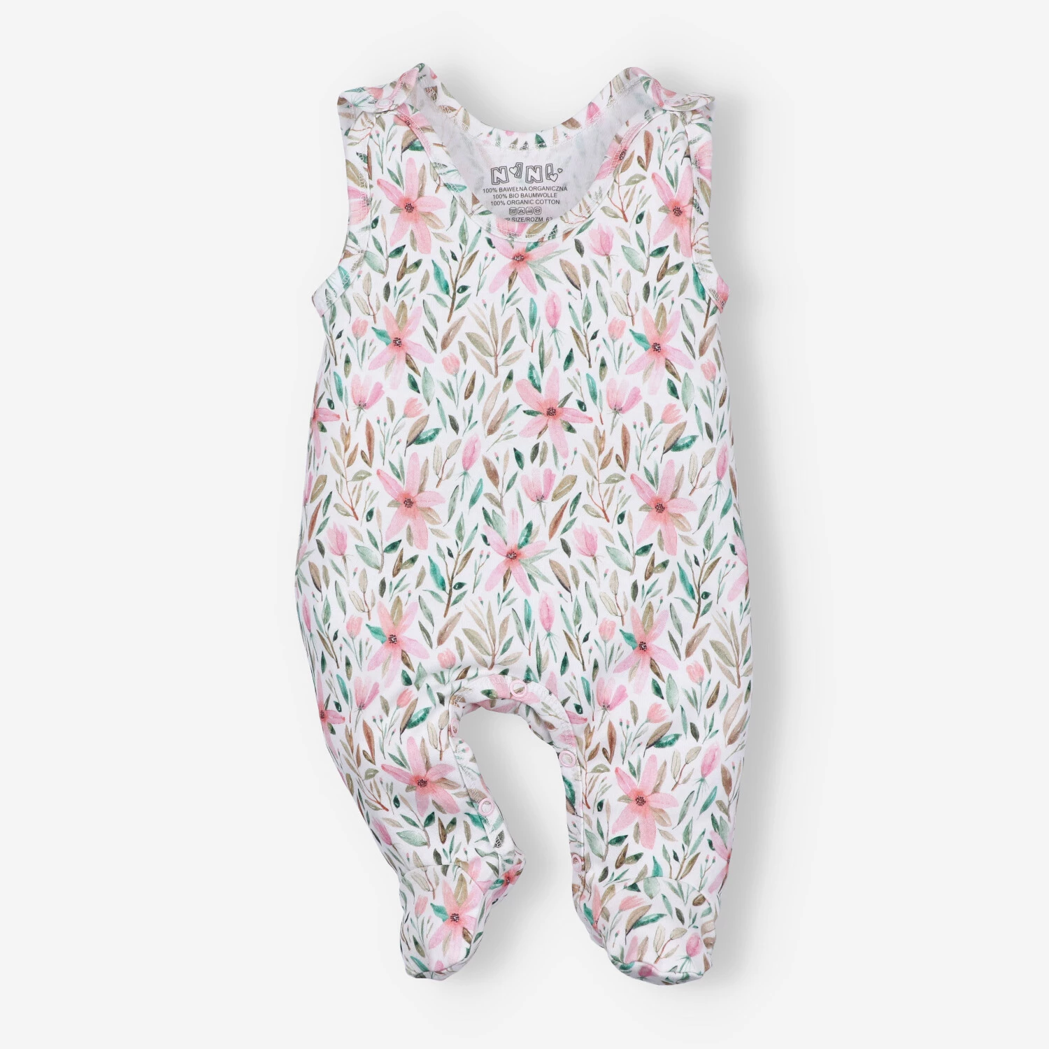 Śpiochy niemowlęce Pink flowers z bawełny organicznej dla dziewczynki
