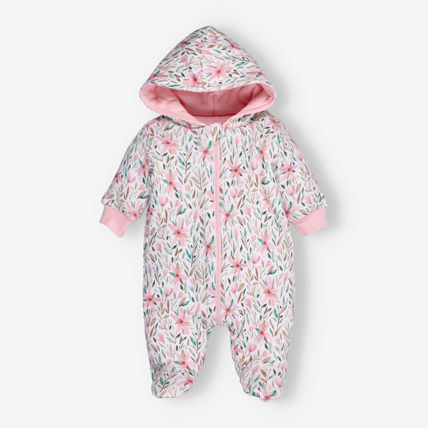 Ocieplany kombinezon niemowlęcy PINK FLOWERS dla dziewczynki