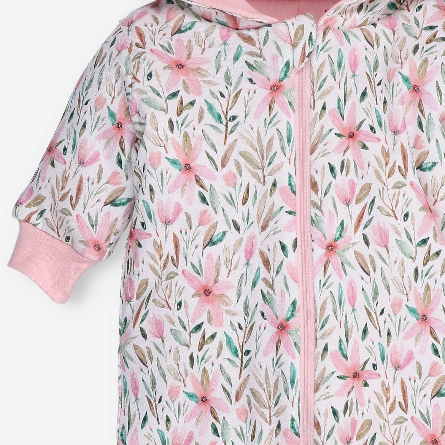 Kombinezon niemowlęcy Pink Flowers z bawełny organicznej dla dziewczynki