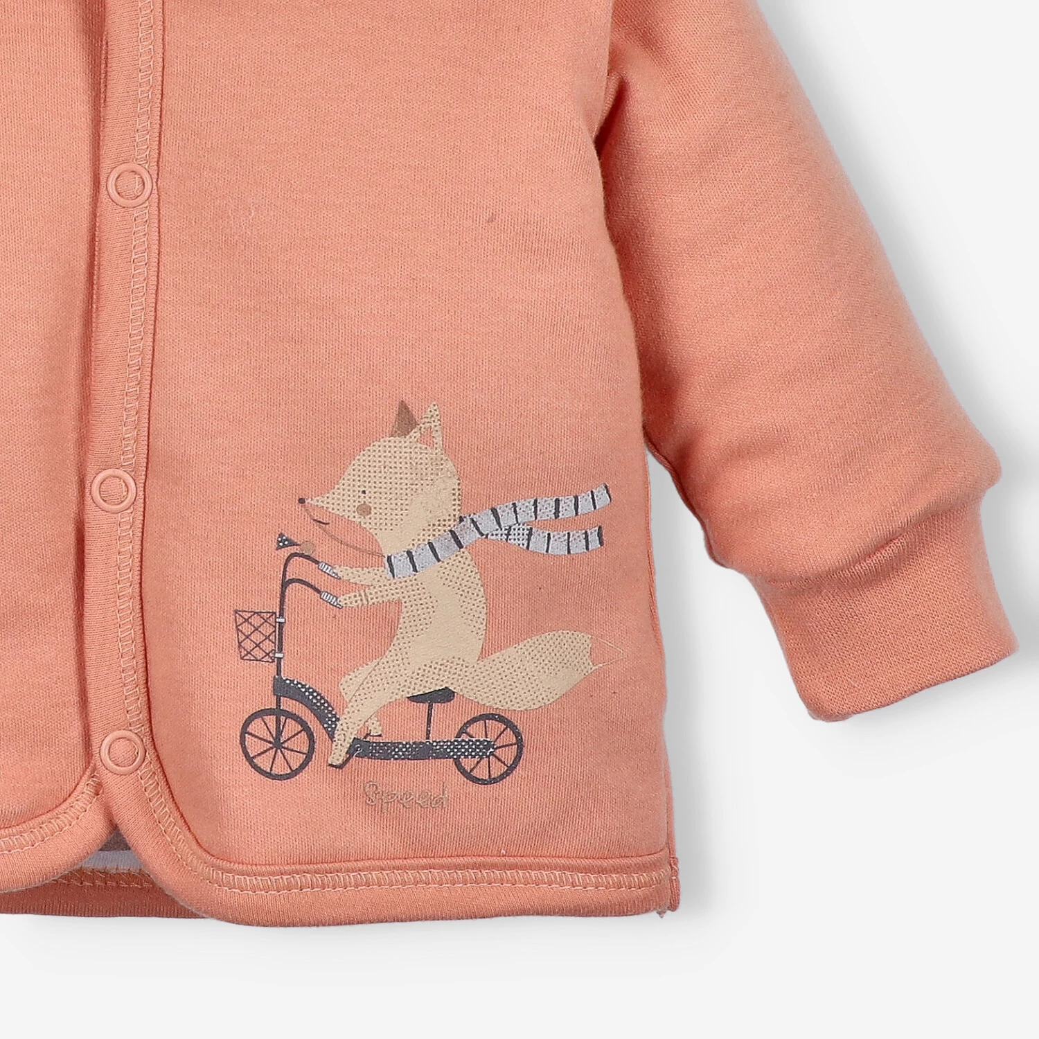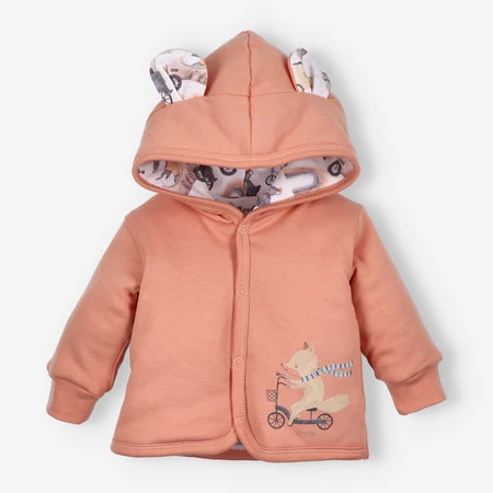Model został ocieplony od środka, a uroczy kapturek z dekoracyjnymi uszkami dodaje mu dziecięcego uroku. Kurtka zapinana jest na bezpieczne bezniklowe napy, a delikatne lamówki chronią skórę przed otarciami. Dla dodatkowego komfortu zastosowano drukowaną metkę, która nie podrażnia.