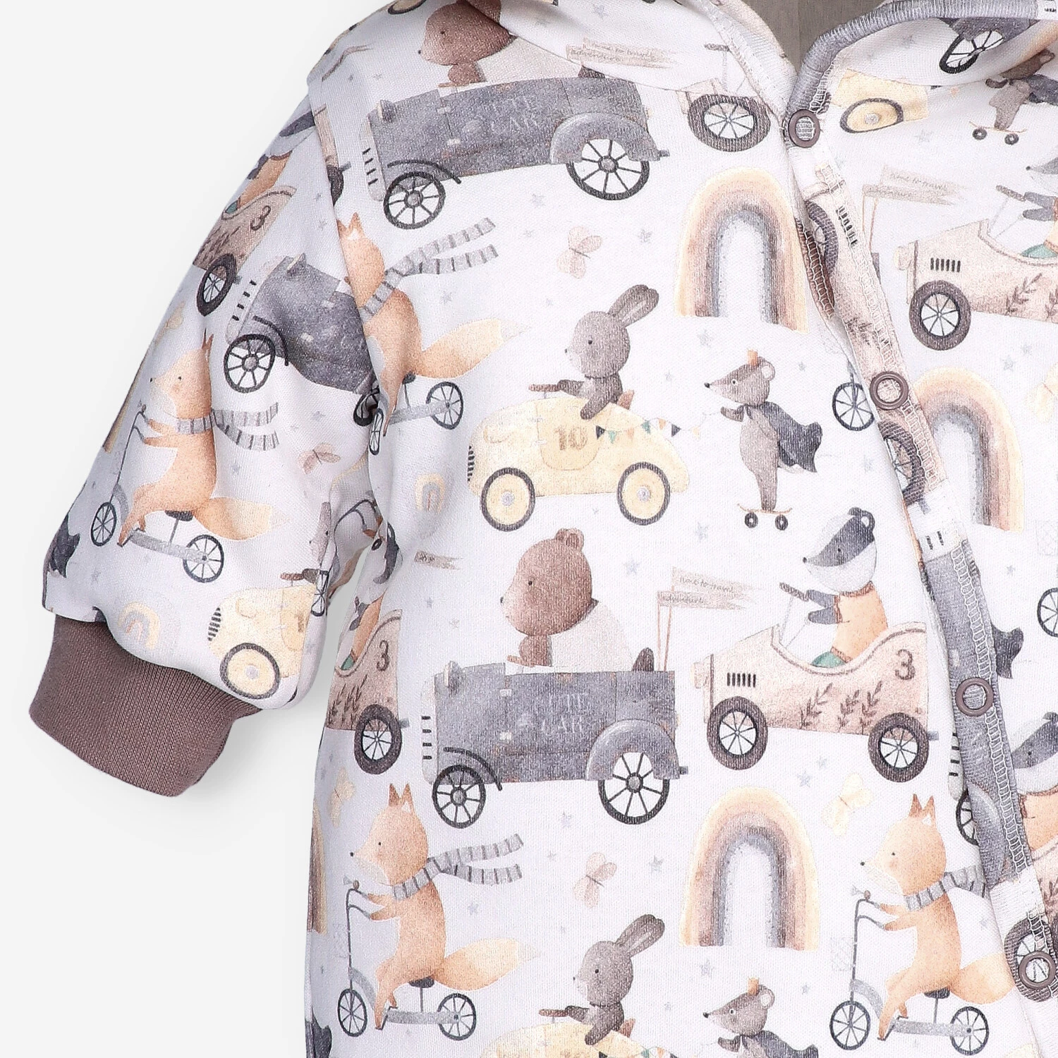Ocieplany kombinezon niemowlęcy Cute Cars Nadruk Zapinany Na Nogawkę Biały