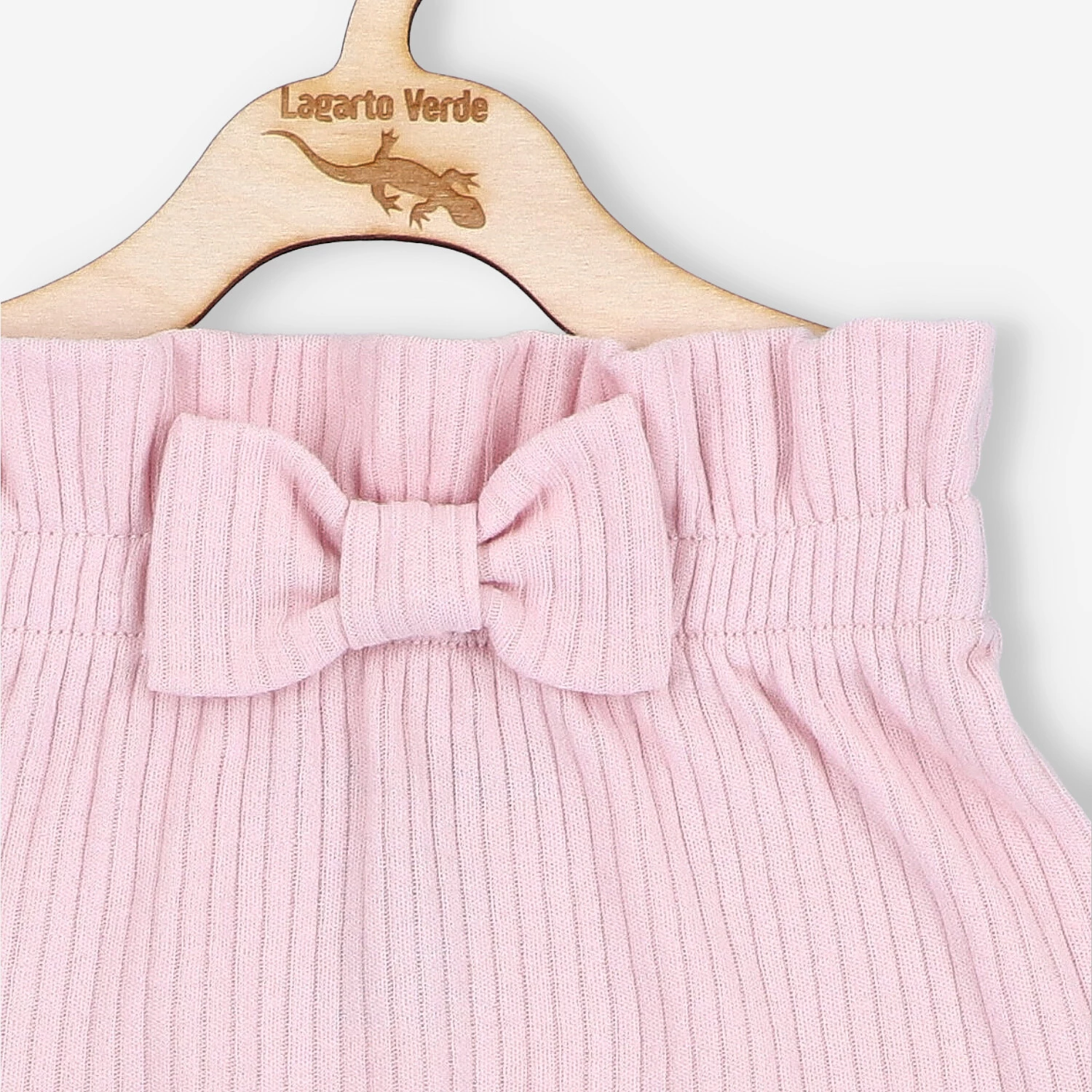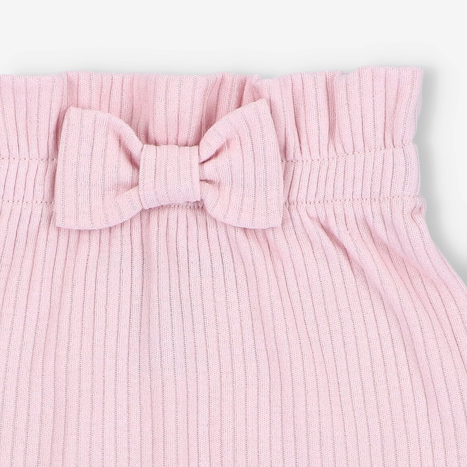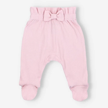 Półśpiochy Niemowlęce Z Dzianiny Prążkowej Z Kokardką Różowy