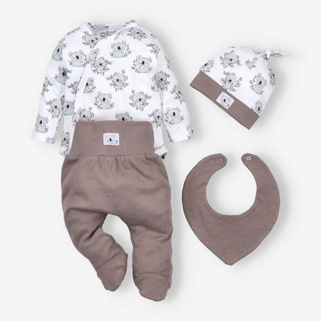 Zestaw niemowlęcy z kolekcji KOALA – body, półśpiochy, czapeczka i apaszka