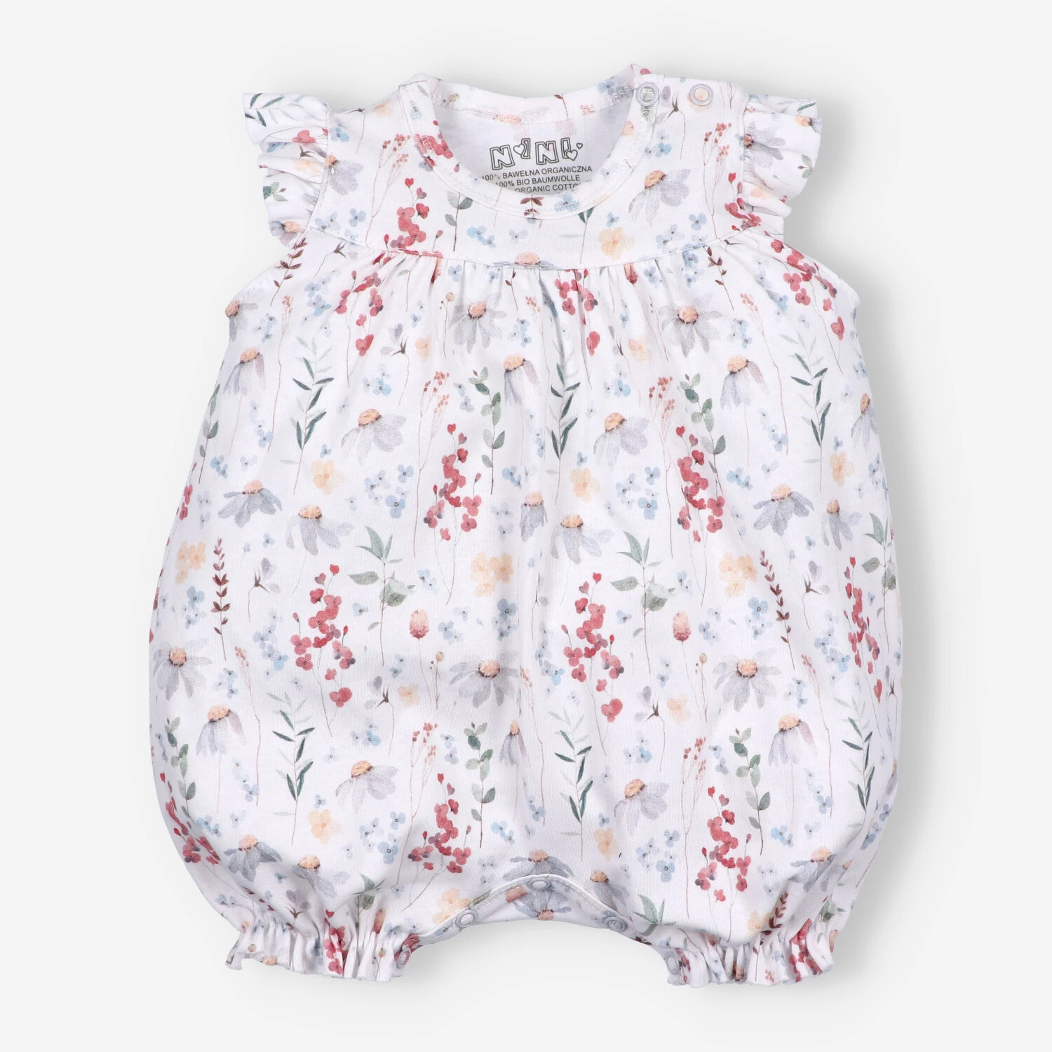 Rampers niemowlęcy Łąka z bawełny organicznej dla dziewczynki