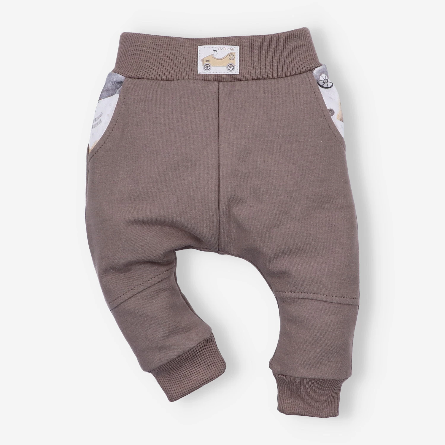 Komplet Niemowlęcy Z Kieszeniami Autka Bawełna Organiczna Brązowy