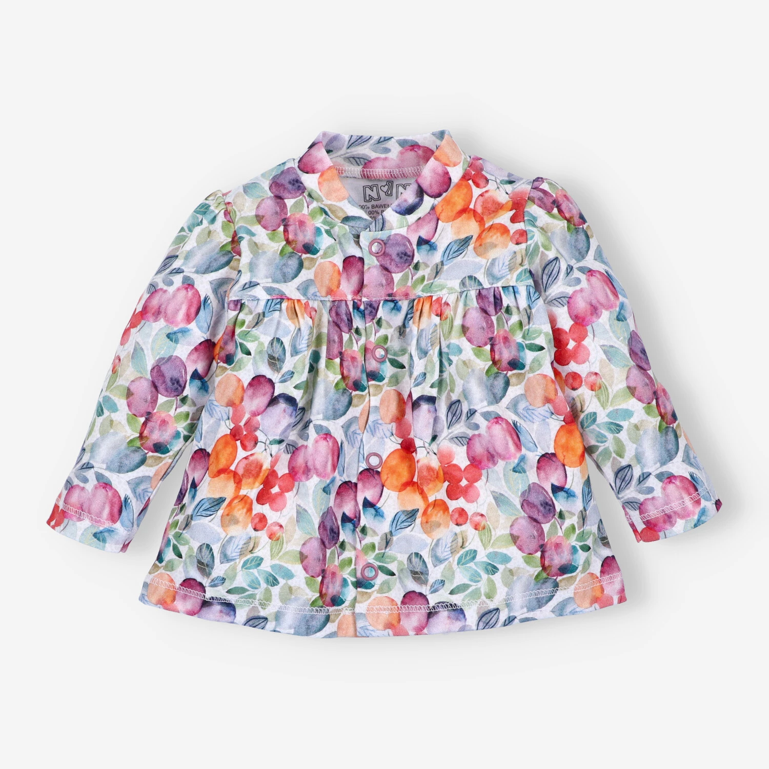 Kaftanik niemowlęcy Śliweczki z bawełny organicznej dla dziewczynki