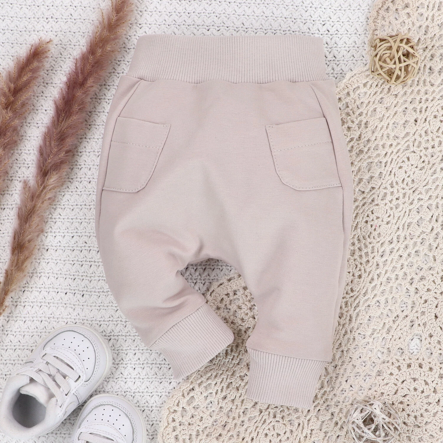 Dziewczęce spodnie dresowe z bawełny organicznej - jasny beż