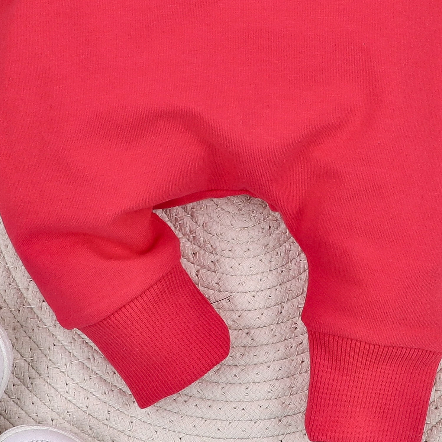 Dziewczęce spodnie dresowe z falbankami z bawełny organicznej - czerwone