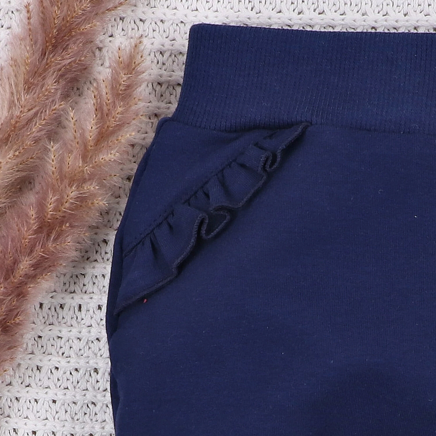 Dziewczęce spodnie dresowe z falbankami z bawełny organicznej - granatowe